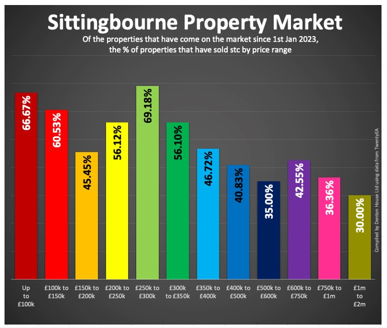 So, let us look at the saleability of Sittingbourne property by price band.