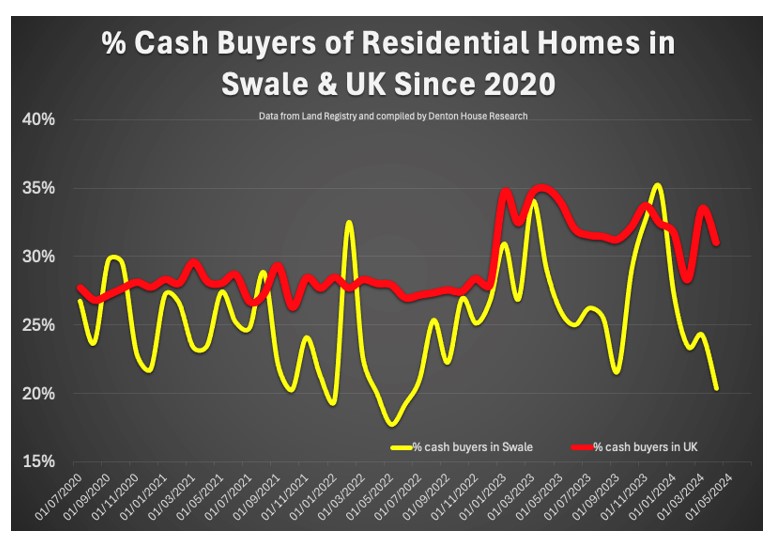 - In 2020, 27.57% of UK home buyers were cash buyers, whilst in Swale, 25.7% of buyers were cash buyers.